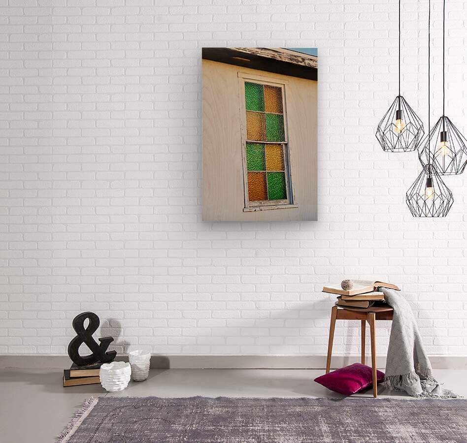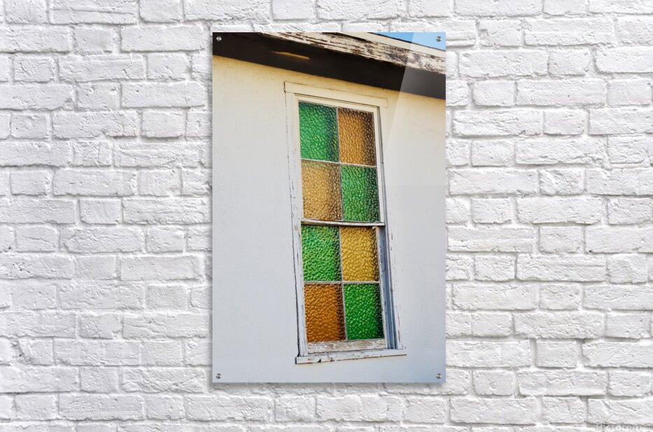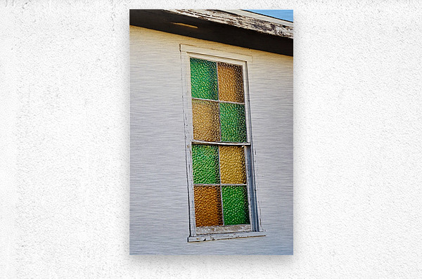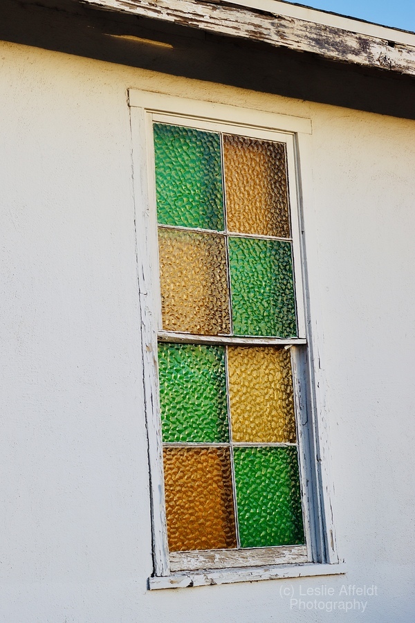 Stained glass window on a old abandoned church in Bullhead City Arizona