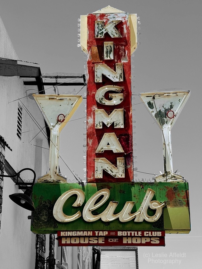 The iconic neon sign from the Kingman Club. A loved reminder of the old times on historic Route 66