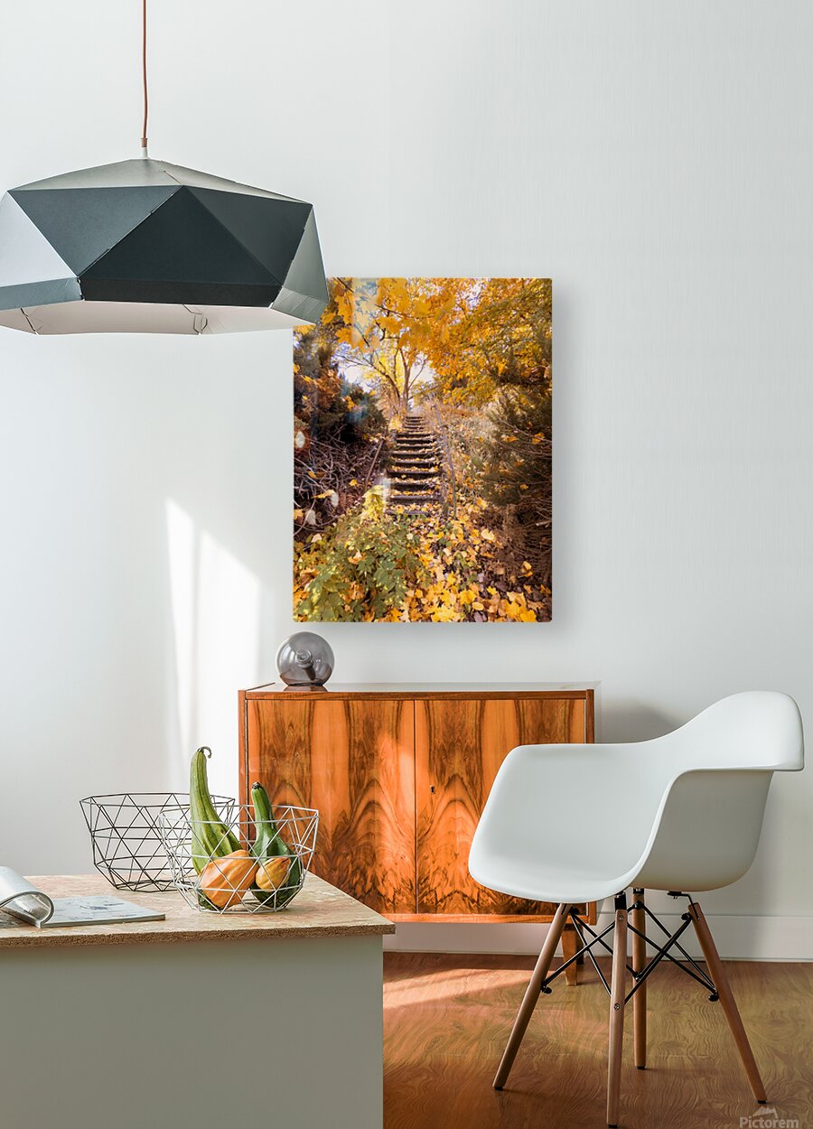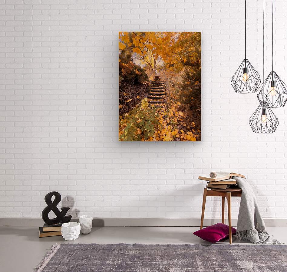 “Steps to autumn’s quiet retreat — where every leaf whispers a golden goodbye.”