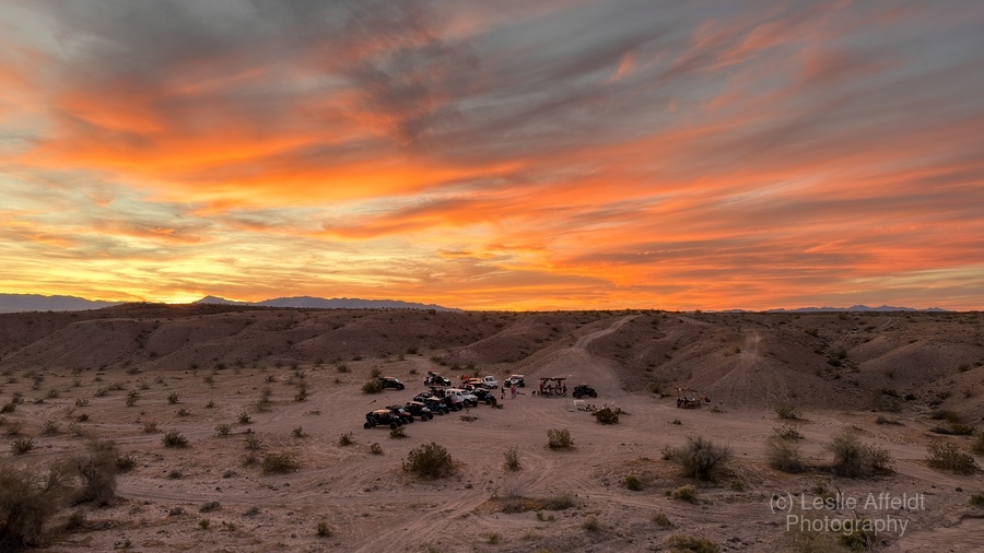 “Friday night lights” sunset happy hour in the Mohave Desert, all thanks to Mother Nature's incredible beauty